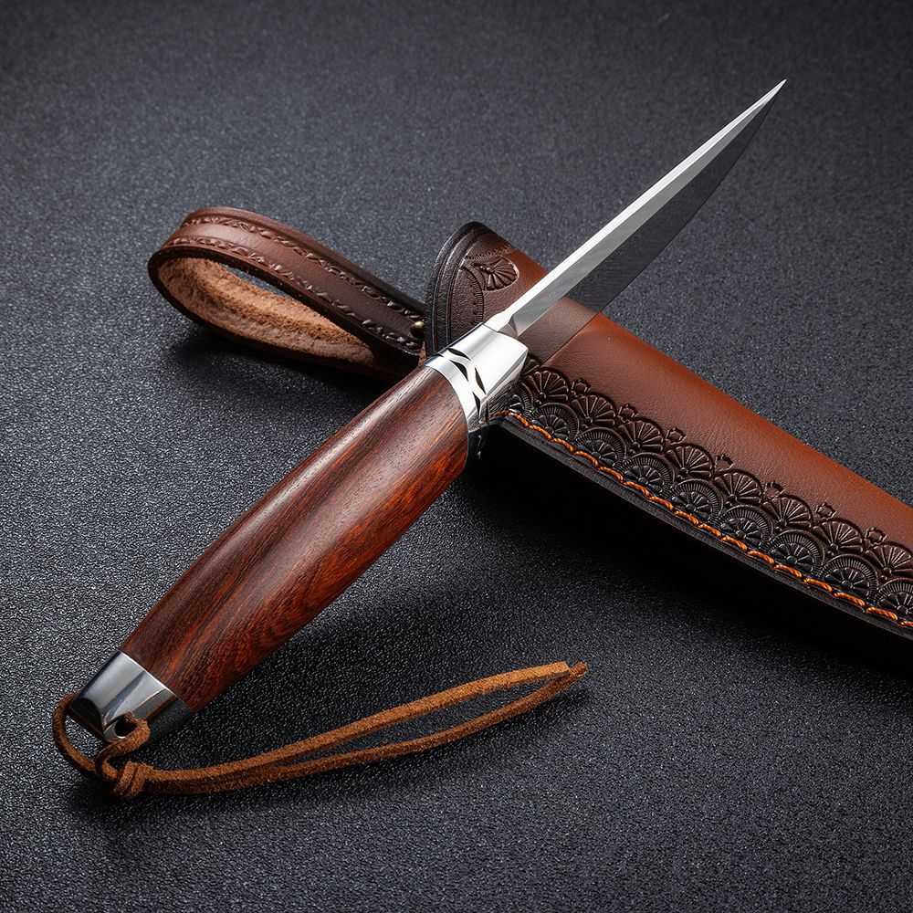 Compact, reliable, and quietly iconic. The Wanderer’s Blade is a carefully selected outdoor knife for the traveller who values balance, utility and a bit of northern style. Its bright, corrosion-resistant 5CR13 stainless blade and warm hardwood handle make it equally at home at the campfire or on the trail.